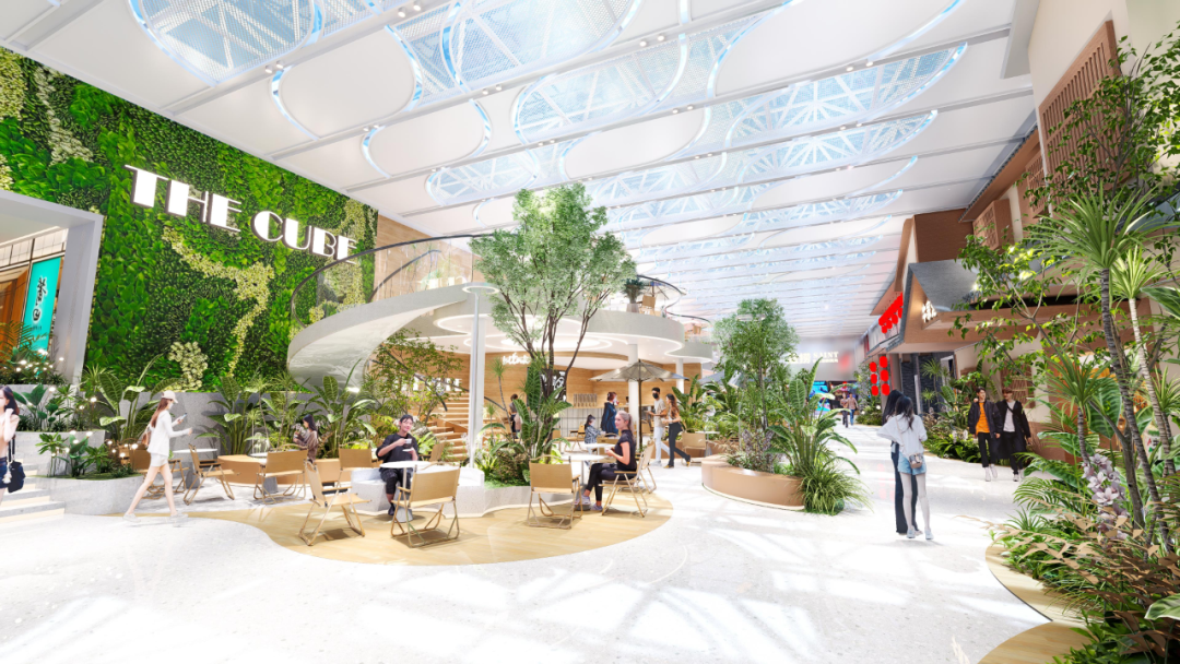 .边界打破:商铺采用开放式橱窗与半通透设计,扩大中庭公共空间,强化“城市公共社交平台”属性。